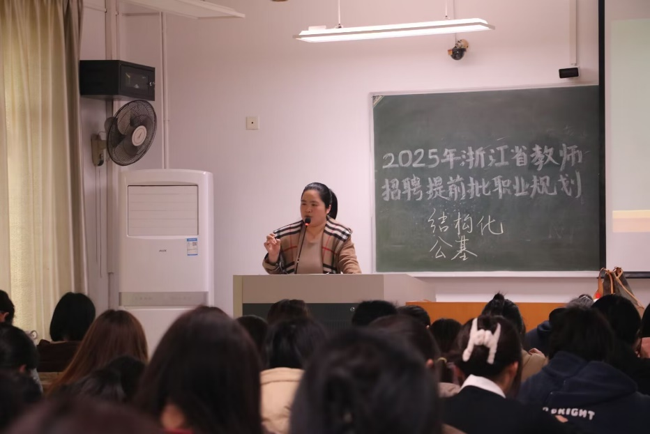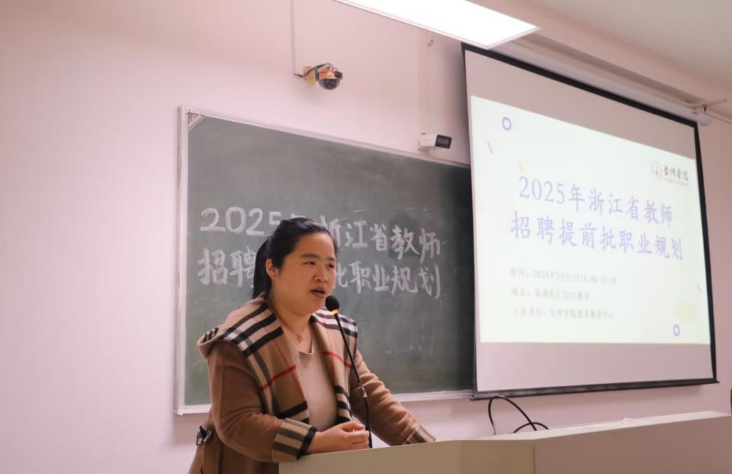 3月21日,校就业服务中心在临海校区2201教室举办“师”路有你第10期活动。浙江省宁波优师师元品牌管理有限责任公司王嘉燕以“2025年浙江省教师招聘提前批规划”为主题,给有志于考取教师编制的同学带来了一场生动的讲座。本次活动吸引了170多名同学参加。