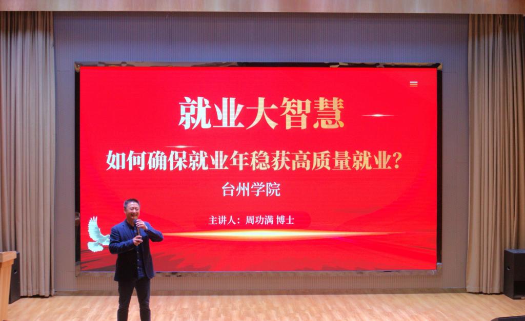 3月29日,校就业服务中心在椒江、临海两校区举办高质量就业训练营活动,邀请浙江师范大学副教授、硕士生导师周功满博士主讲,500余名学生参加。