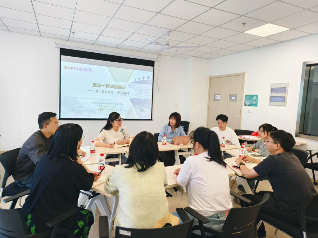 为进一步提升心理健康工作的针对性和有效性,5月28日,学校心理健康教育与咨询中心联合智能制造学院“心空领航”心理辅导站、雪绒花心理工作室举办以“遇见一颗冰冷的心:当谈心谈话陷入僵局”为主题的第43期“启心有约”活动,智能制造学院党委副书记梅娇、全体辅导员及校心理中心专职咨询师共同参加交流。