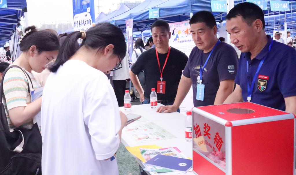 招聘会现场人头攒动,气氛热烈。各个招聘摊位鳞次栉比,学生们手持精心准备的简历和求职信,有的穿上了精心准备的正装。招聘人员热情地介绍公司情况、岗位需求、薪资待遇等情况,学生们认真聆听,仔细询问,努力寻找着与自己专业和兴趣相匹配的岗位。企业代表们耐心解答毕业生们的疑问,讲解公司文化和福利制度,为他们提供全面的就业信息,有些企业直接进入面试或者筛选环节。现场的“职场小萌新”幸运抽奖和台州湾经济技术开发区举办的集章抽奖活动,吸引了不少低年级同学来到招聘会现场,他们提前了解行业需求,寻找实习岗位,感受就业氛围。