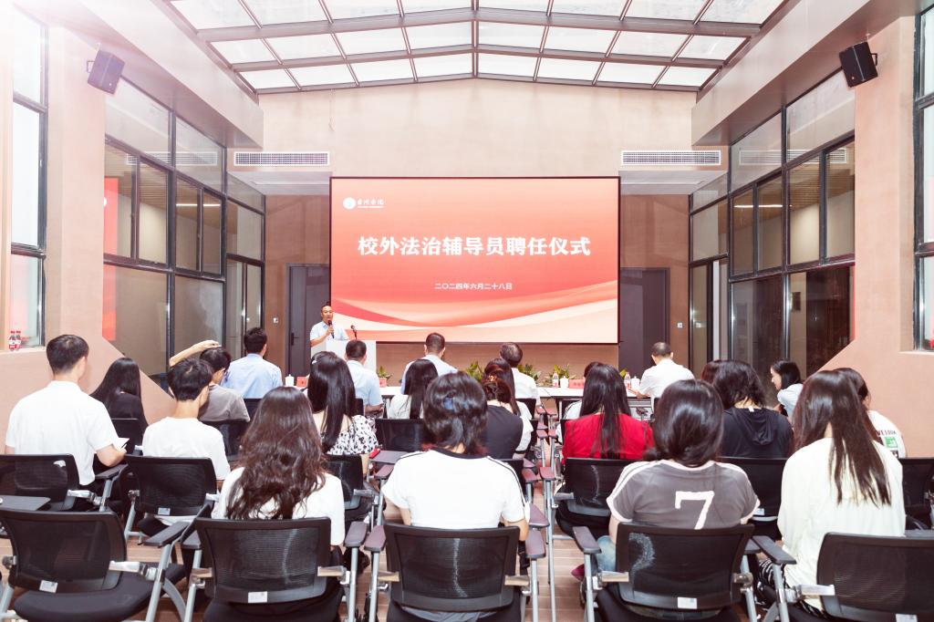 为进一步加强校园法治建设,构建平安校园,6月28日,我校在商学院大楼中庭举行校外法治辅导员聘任仪式。校党委副书记项凤日,椒江公安分局葭沚派出所教导员林小挺、社区民警王冠军等出席仪式。仪式由学工部部长杨启富主持。