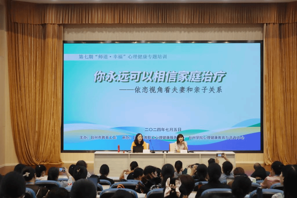 为进一步提升全市教职工心理健康工作水平,7月5-6日,由台州市教育工会主办,台州市教职工心理健康服务中心、台州学院心理健康教育与咨询中心联合承办的第七期“师道·幸福”系列讲座在椒江校区国际会议厅举行。活动特邀同济大学心理健康教育与咨询中心姚玉红教授作“你永远可以相信家庭治疗”为主题的心理健康专题培训,全市200余名教职工参加学习。