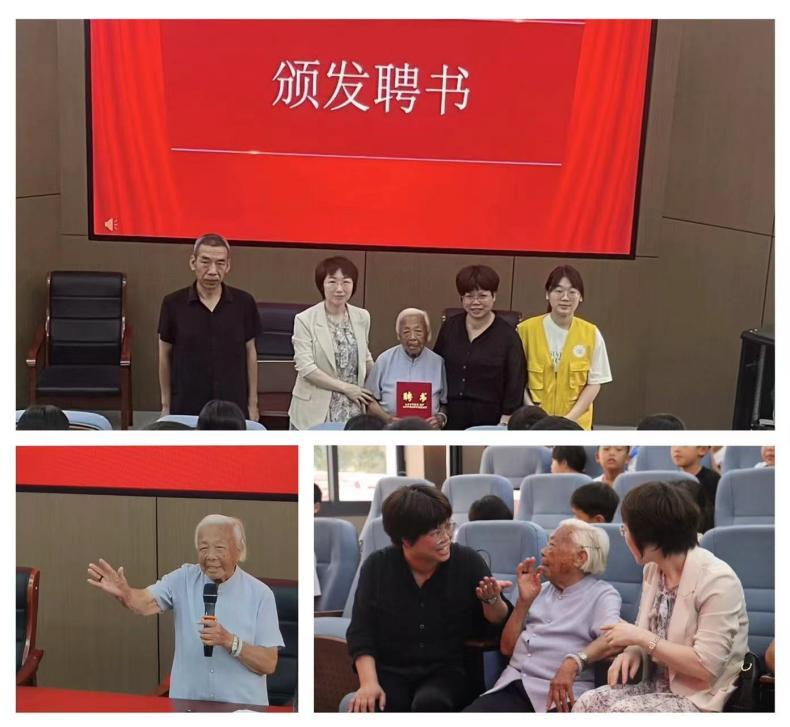 为帮助广文实践队队员和孩子们更深一步了解芙蓉村的历史和精神,芙蓉村委会为“准百岁老人”罗丙香颁发聘书,聘请其为本次暑期公益国学课堂的“课外辅导员”。这位特殊的辅导员,曾是老妇女主任,是老越剧团团长,更是一位九十二岁高龄的老党员。她精神矍铄,眼神中闪烁着对年轻一代实践队伍的深切期盼,言辞中流露出着后辈们的殷切祝福与美好祈愿。
