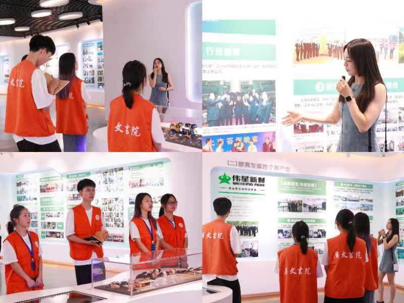 在晁泳圣经理带领下,队员们来到了伟星集团的图片展示厅。通过讲解员详细地介绍,实践队员们逐渐理清了企业发展的脉络。从“三间古庙,七名工人,九台土机器”的艰难起步,到外向型经济的历史变革,最终实现产业格局与机制体系的开拓创新……这里不仅展现了伟星集团创立伊始的坎坷,更重现了铸就如今行业领先地位的辉煌历程。一幅幅生动的图片、一件件精心陈列的研发产品,无不诉说着伟星人的拼搏与智慧。