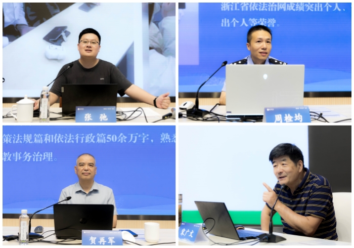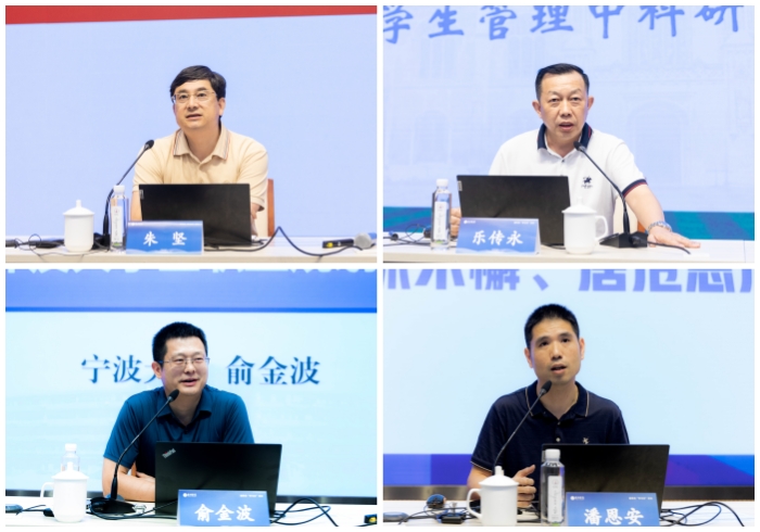 宁波大学阳明学院党委书记俞金波以“考研工作及大学生职业规划大赛指导”为题作经验分享,提出“目标—策略—计划—行动”的考研指导的工作方法,分析如何指导学生做好职业规划,形成工作品牌。浙大城市学院心理中心副主任潘恩安以“学生关心关爱和辅导员谈心谈话”为题,深度分析当前大学生心理健康状态,提出数智赋能,在五育并举、四级网络、三级关注中找准定位。杭州师范大学沈钧儒法学院刑法教研室主任张弛围绕“高校学生管理过程中的法律问题”,以丰富鲜明的案例陈述,深入浅出地分析了学生工作中可能面临的法律相关问题。台州市公安局网络安全保卫支队一大队队长周检均以“共建网络舆情防护网”为题,列举了生活中常见的不文明网络行为,倡议规范网络言行,共同营造清朗的网络空间。浙江省民宗委宗教二处一级调研员贺再军开展“高校宗教政策宣讲”,详细阐释党的宗教方针政策和国家、省有关宗教法规规章要点,并明确了高校宗教工作的重点与技巧。广东白云学院博士生导师宋广文作“知心见性 知理悟道——高校辅导员压力管理的心理策略”的专题报告,从认识内心、认识社会、认识问题等维度出发,生动地讲解辅导员群体应对工作、生活压力的正确态度和方法。