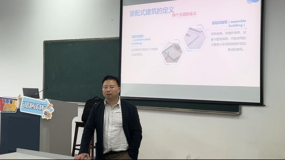 叶谦以装配式建筑装修为切入点,回顾了装配式建筑从萌芽到发展的历程,强调了其在推动建筑业转型升级、提升建筑效率与质量方面的重要作用,他详细解读了国家层面为推动装配式建筑发展所制定的政策措施,包括政策出台的背景、目的、实施现状及成效。接着,他剖析了当前装配式建筑标准制定与执行面临的挑战,并通过具体案例,展示了标准化对于提升装配式建筑整体性能、促进市场接受度的重要性,阐述了装配式建筑的构成体系,包括预制构件的连接技术、结构体系的优化设计等关键要素。最后,叶老师分析该行业的发展前景和目前专业人才需求,激励同学们投身装配式建筑领域,为就业铺设宽广道路。