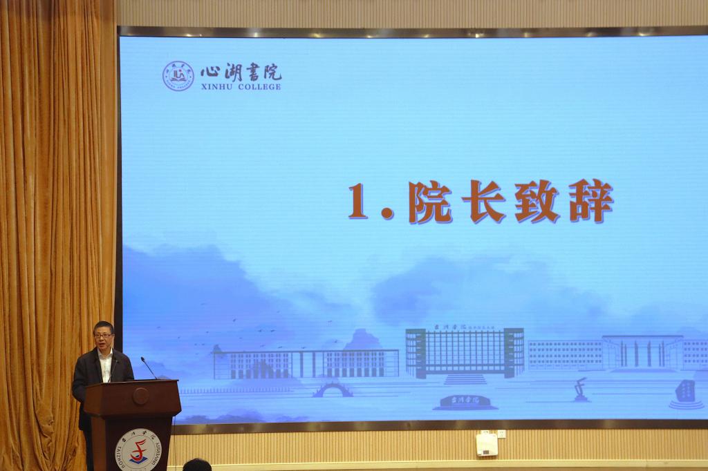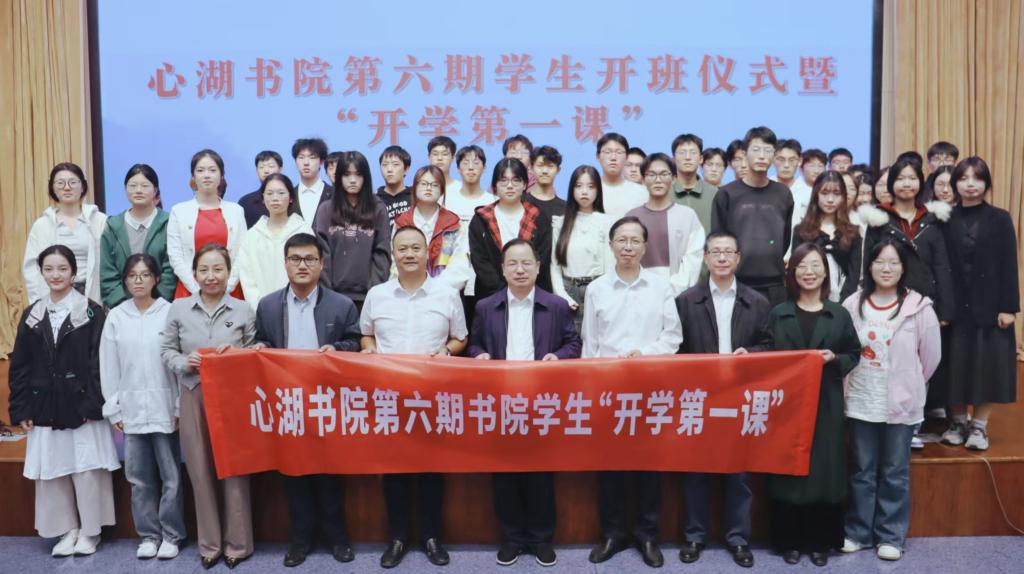 2024年10月23日晚,心湖书院在国际会议厅隆重举行第六期书院学生开班仪式暨“开学第一课”。校党委委员、纪委书记楼胆群,校党委副书记项凤日出席活动,学工部负责人、心湖书院管理团队、导师代表参加仪式。