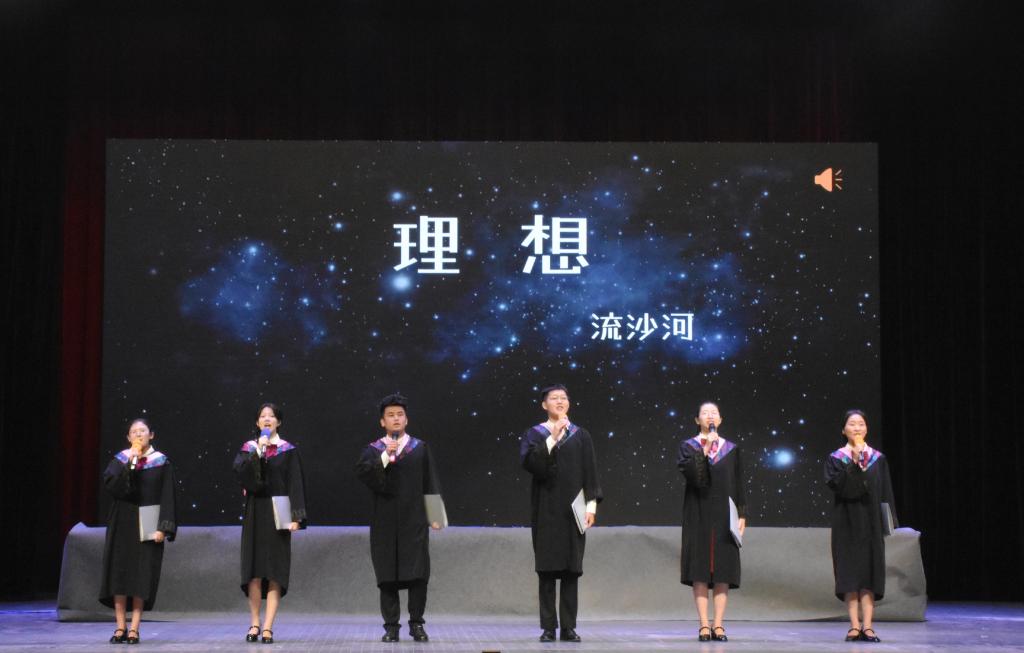 毕业生代表现场朗诵了流沙河的《理想》。诗歌从理想的方向意义、历史意义、人格意义、人生意义等角度出发,逐层揭示理想的丰富内涵。朗诵也鼓舞毕业生们要树立理想,为理想而奋斗。