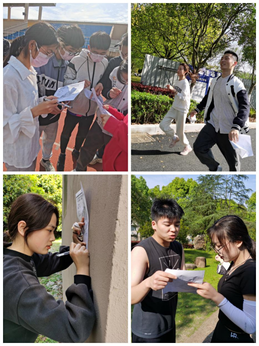 现场共分为10组,在进行简单的热身活动后,各小组在工作人员处领取路线地图,各小组相互讨论,熟悉规则,然后一起出发到校园内各个定点寻找线索。在活动过程中,各小组成员相互配合,他们奔跑在校园里的每个角落,认真记录定点标记,阳光记录下了他们青春最好的样子。通过激烈的角逐,最终由周杰、汪鹏飞、贾梦缘小组取得本次活动的第一名。