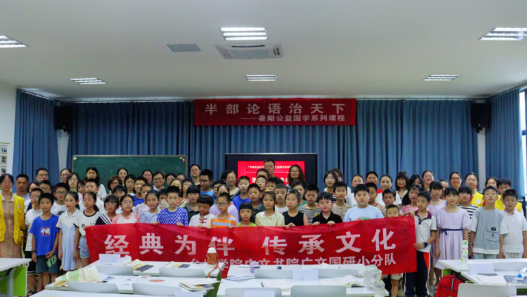 7月16日上午,广文书院国研暑期社会实践队在临海小学报告厅举行了“半部论语治天下”暑期公益国学系列课程第二期结业典礼。第二期的学生及其家长汇聚一堂,书院实践队队员何楠怡主持。