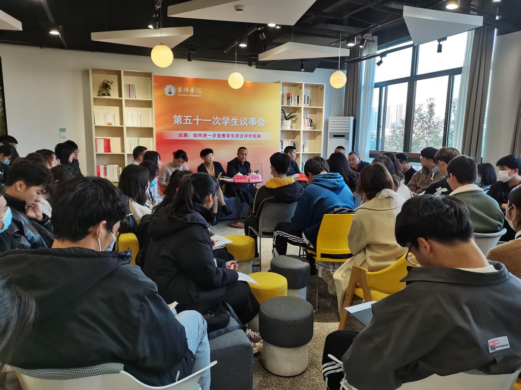本次学生议事会以“如何进一步完善学生综合评价机制”为议题。会前,议事会代表们深入各相关部门和二级学院开展调研、整理资料、形成议案。会上,代表们围绕议题,踊跃发言,就学校学生综合考评机制改革,特别是美育、劳育内容发表自己的观点和建议,并从评奖评优、学业评价、非专业素质评价、体质健康测试等方面展开具体深入的讨论,阐述各自观点,提出中肯意见和富有建设性的建议。