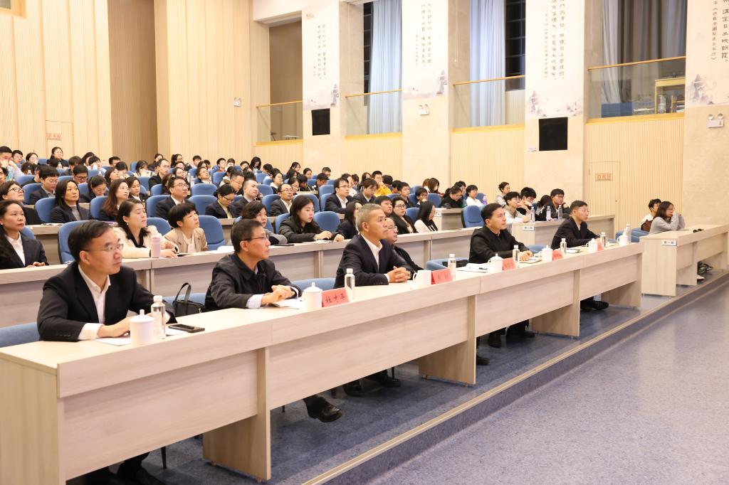 11月21日晚,第一期心湖大讲堂、第二期农行“初心”讲习堂暨第三十三期心湖讲坛在国际会议厅举行,活动特邀浙江省委党校王希坤教授,作《弘扬传统心学文化 提升现代人性修养》主题讲座。校党委委员、纪委书记楼胆群主持讲座,中国农业银行台州分行行长陈宇洪、纪委书记张纲及心湖书院院长杜才平等出席活动,学校部分纪检干部、农行职员和心湖书院学生参加学习。