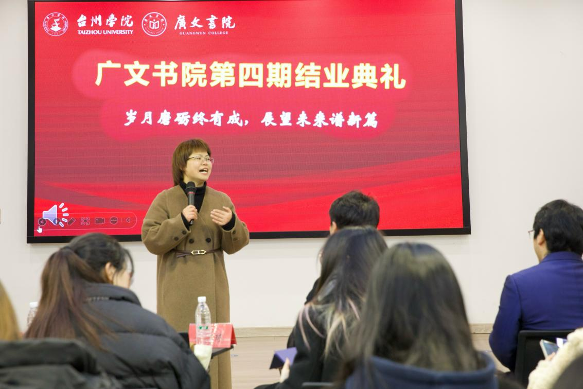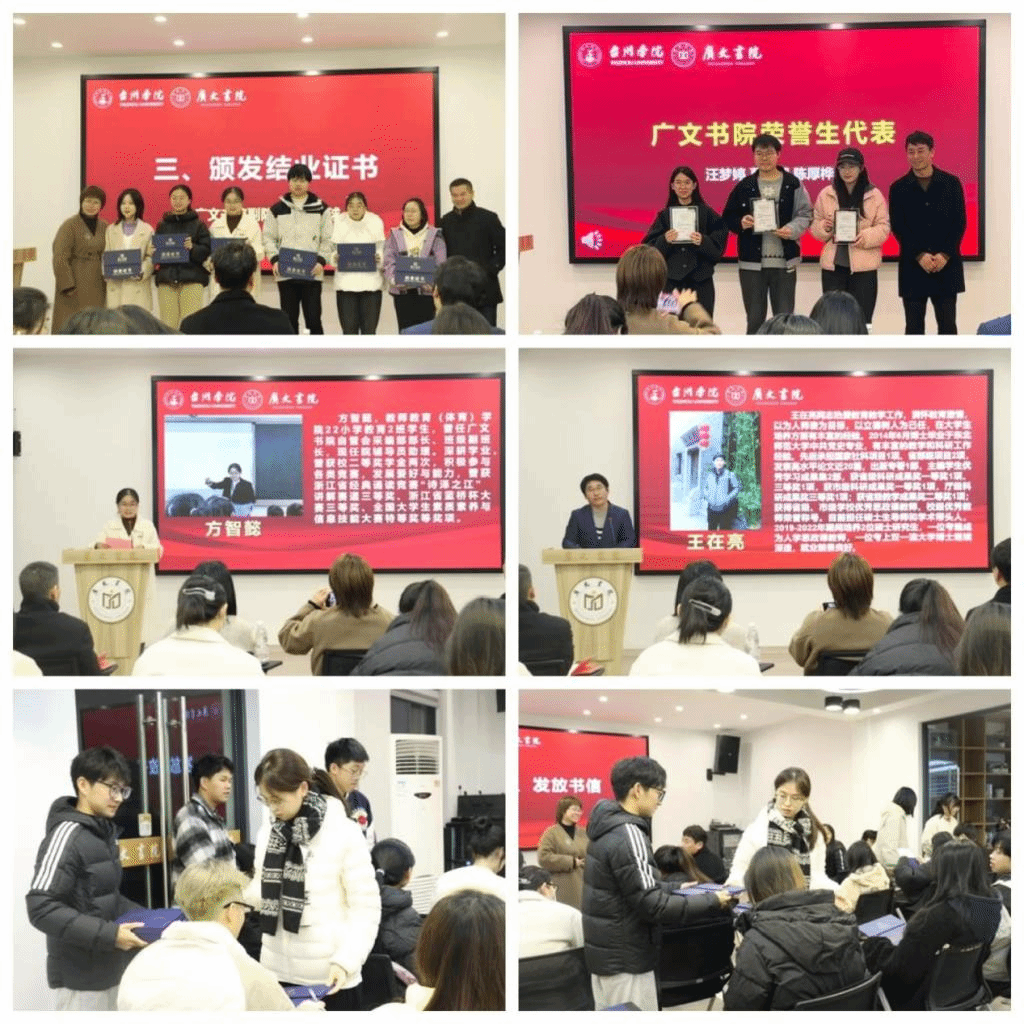 12 月 25 日晚,广文书院第四期学生结业典礼于多功能厅隆重举行。学工部副部长余伟峻、广文书院副院长金旭球、书院导师代表以及第四期结业生齐聚一堂,共同见证这一重要时刻,典礼由广文书院学生陈鎣榆主持。