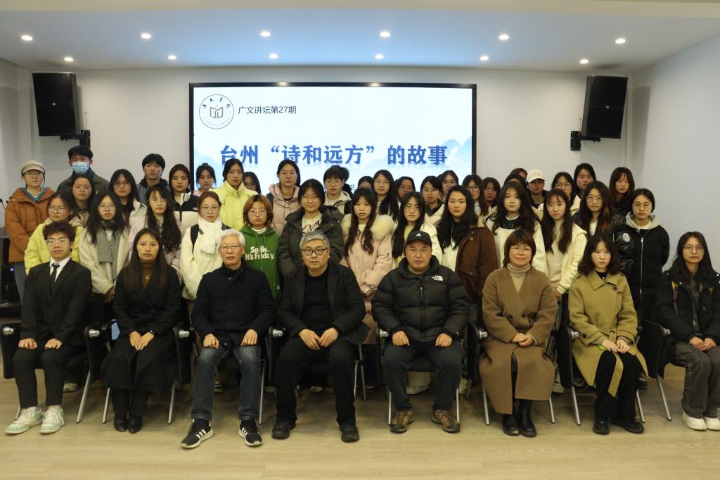3月10日晚,广文书院第27期广文讲坛如期举行。台州市政府研究室二级调研员、决策咨询委员会秘书长洪卫以“台州诗和远方的故事”为主题,为师生们带来了一场精彩的文化讲座。广文书院院长胡正武、副院长金旭球、导师郭文平与部分学生一同聆听。
