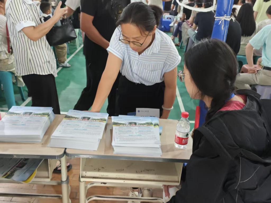 在洪家中学的政策宣传活动中,团队成员耐心解答学生和家长的各类疑问,详细介绍国家助学贷款、奖助学金等资助项目的申请条件和流程,让更多学生了解资助政策。很多学生和家长对台州学院今年的招生政策咨询较多,队员们对学校情况和相关专业做了介绍,并鼓励大家报考台州学院。