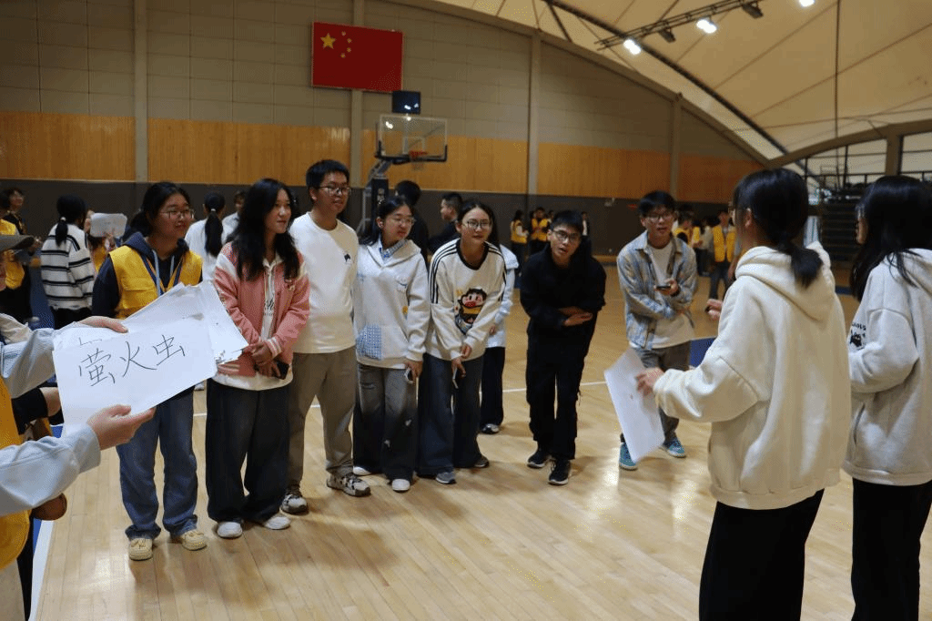活动以热烈的“秋日初见你”破冰环节拉开帷幕。学校心理健康互助中心同学带领互动,通过精心设计的游戏,有效促进了新生间的交流互动,迅速消除了初识阶段的拘谨氛围;随着现场气氛升温,“快乐并肩行”团队协作环节随即展开,同学们按前期既定分组,在“盲行寻宝”“无声排序”“你划我猜”等趣味项目中友好竞技,各队成员全情投入、商讨策略、默契配合,尽显团结协作与勇于挑战的青春风貌。