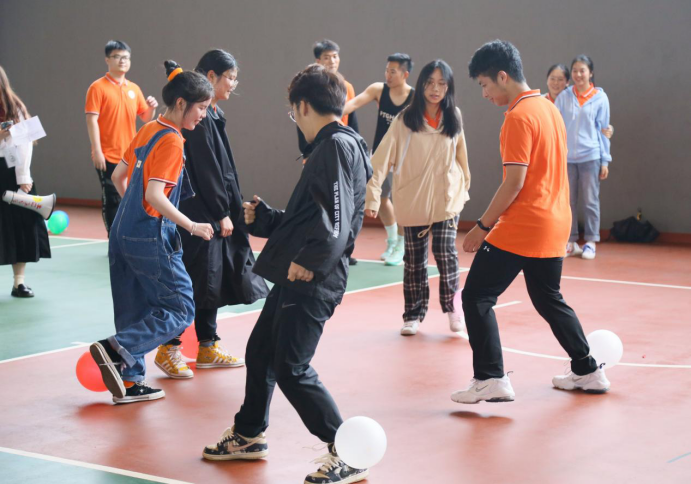 破冰活动开始,小组成员们从点头之交到并肩作战,齐心协力,用绳子稳住小球,气球托起纸杯,相互倚靠着站在报纸上,守住系在脚踝的气球。掌声、呼声、加油声凝聚成一往无前的力量,难而不惧,乱能慎行,一步一步迈向胜利。