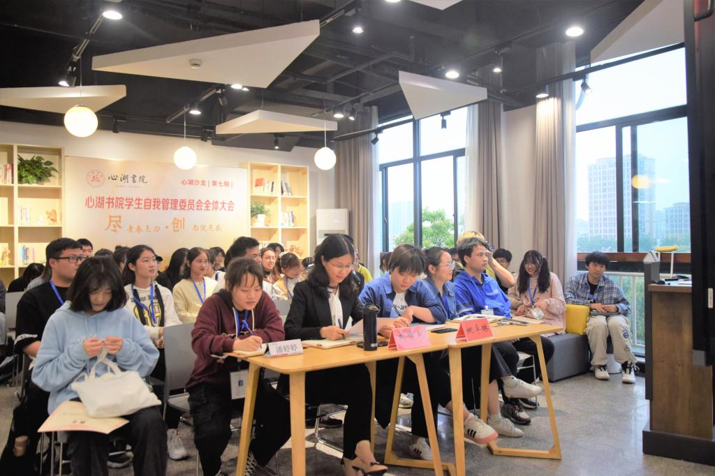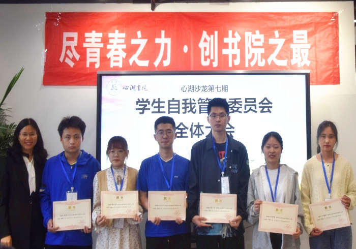 4月27日下午,心湖书院在书院学习交流区开展以“尽青春之力、创书院之最”为主题的心湖沙龙第七期暨心湖书院学生自我管理委员会全体大会。心湖书院副院长刘贵花、全体心湖书院学生自管会成员及各二级学院联络员共同参加,辅导员姚卓琳主持沙龙。