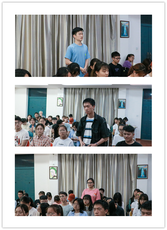 之后,学生代表与老师进行讨论,每位同学畅所欲言,提出了自身的困惑。两位老师从目标的选择与确定、演讲的技巧、数学学习中的可能遇到的瓶颈及学习方法、理科和文科的融合学习、年轻教师的基础目标以及传统板书与多媒体之间的矛盾进行了一一解答。听完老师的分享,同学们收获颇多。