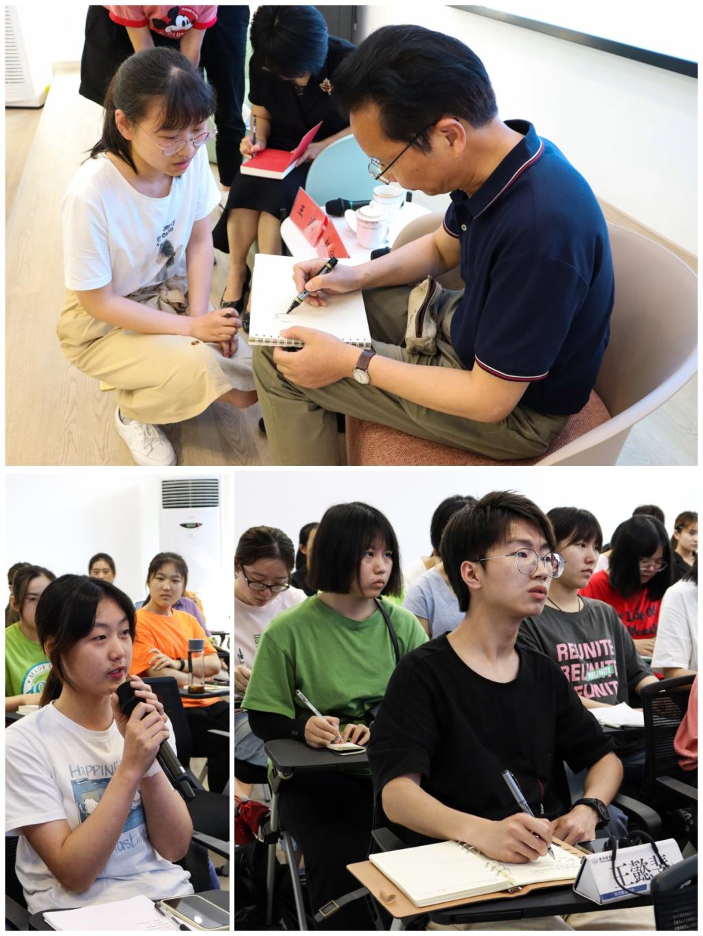 提问环节,学员们就“如何提高文字能力”“如何坚持爱好”等问题向赵宗彪和王寒请教。他们强调,同学们一定要多看、多走、多写。所有的爱好都能丰富生活,只要热爱,就不觉辛苦。