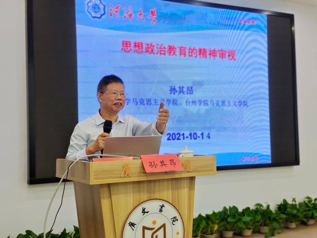 10月14日晚,广文讲坛第九期在临海校区广文书院多功能厅开讲。台州学院马克思主义学院三台学者、河海大学博士生导师孙其昂教授作题为“思想政治教育的精神审视”的讲座。广文书院院长胡正武主持讲座,学工部副部长马斌及书院学生50余人参加。