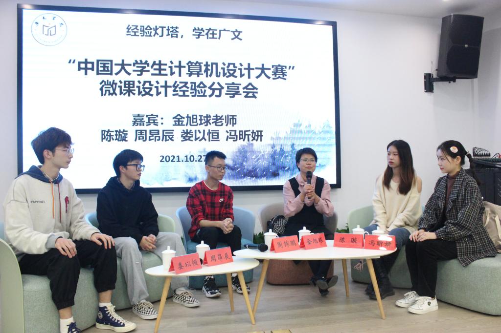 10月27日晚,广文书院在多功能厅举办以“经验灯塔,学在广文”为主题的中国大学生计算机设计大赛经验分享会,广文书院导师金旭球、书院辅导员黄廷美,参赛学生陈璇、周昂辰、娄以恒、冯昕妍,以及书院学员参加活动。