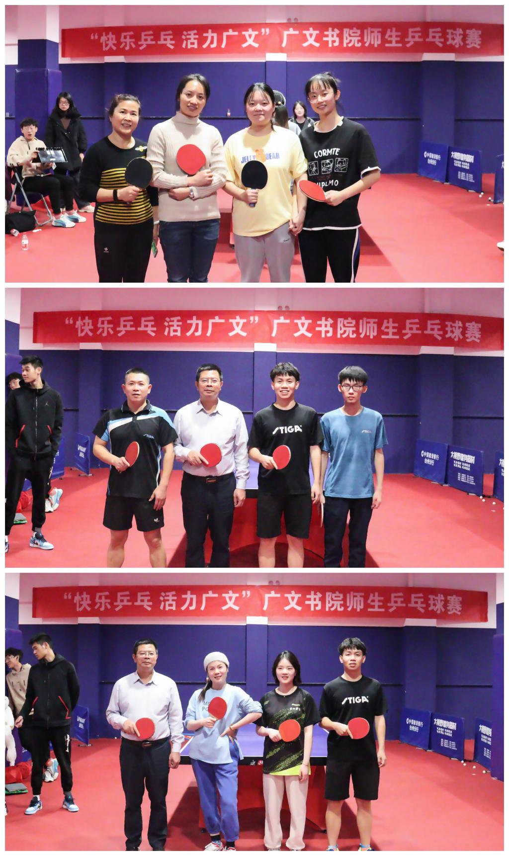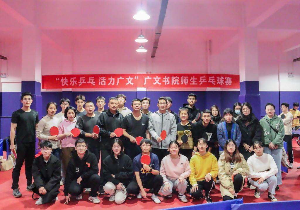 为增进书院师生间的交流,展现书院师生们健康、活泼、积极进取的精神风貌,11月8日晚,广文书院“快乐乒乓,活力广文”师生乒乓球交流赛在临海校区乒乓球馆举行。
