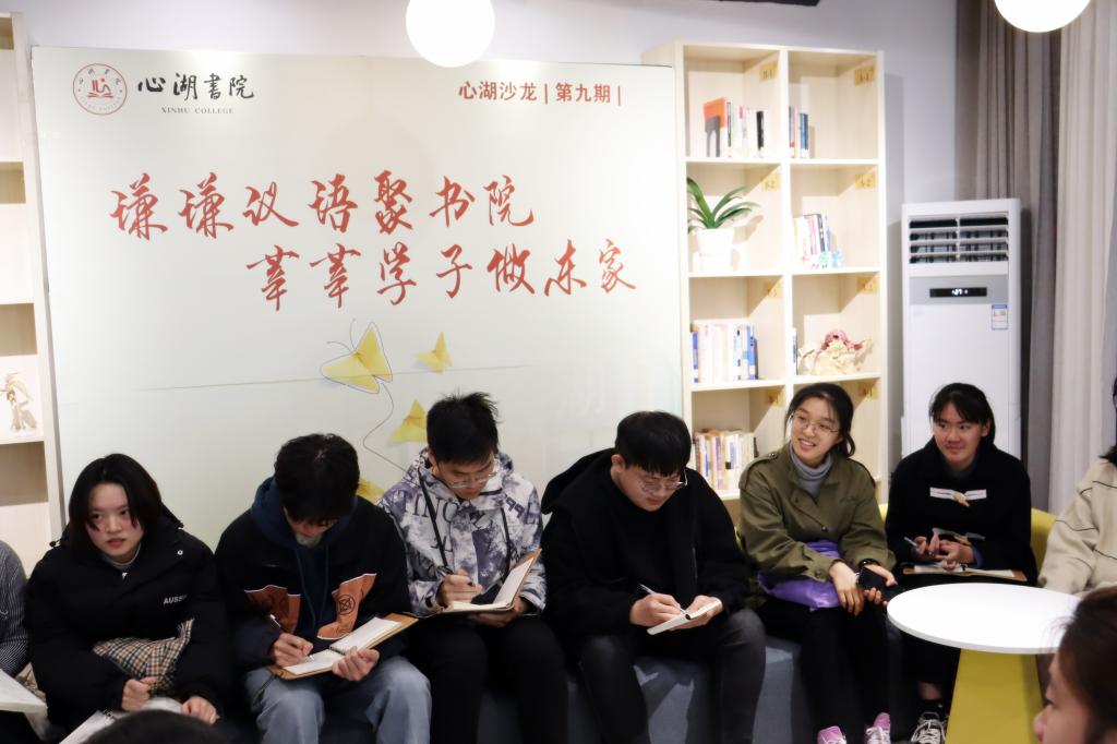 为了解书院学员对书院发展的想法和建议,11月26日晚,心湖书院举办主题为“谦谦议语聚书院,莘莘学子做东家”的第十期心湖沙龙活动,二十余位书院学员代表和部分21级新生共同参加,书院学员蔡洛婷主持。