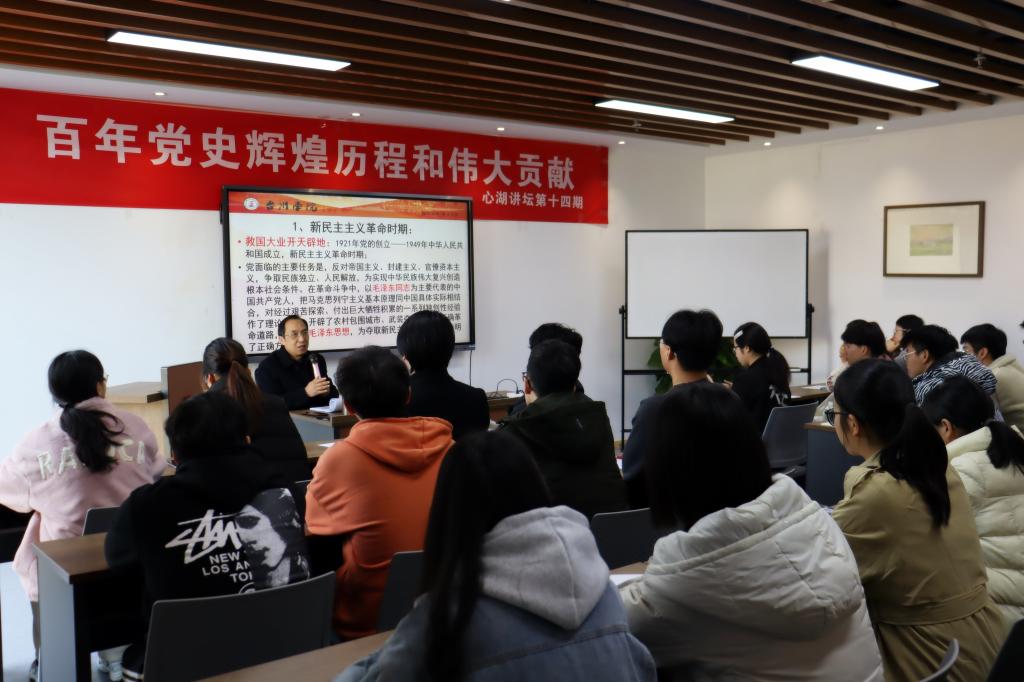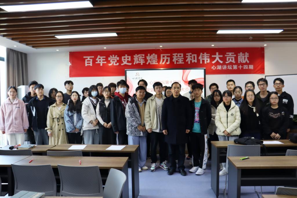 为深入学习贯彻党的十九届六中全会精神,12月9日下午,校党委委员、副校长胡韶光应邀为心湖书院学生作以“百年党史辉煌历程和伟大贡献”为主题的第十四期心湖讲坛。心湖书院院长梁华定、辅导员姚卓琳及书院学生参加聆听学习,学员杨诗琪主持。