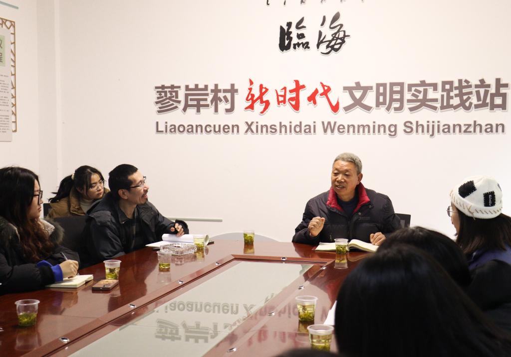 上午,在村支部书记应春华等人的带领下,调研团队来到了蓼岸村文化礼堂。村部文书张兰金为团队讲解了村子的基本情况与发展历程,向团队提供了不少珍贵信息。随后,团队在村干部带领下走访了蓼岸村,沿途参观了村落的真实风貌。