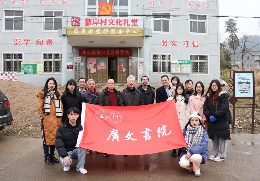 1月16日,在广文书院院长胡正武、人文学院单仁慰、学工部副部长马斌和广文书院辅导员黄廷美带领下,广文书院研学小分队来到永丰镇蓼岸村,进行景区村落的调研活动。