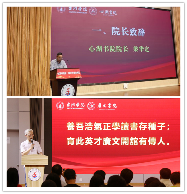 典礼伊始,心湖书院院长梁华定、广文书院院长胡正武分别就书院成立两年来的工作作了全面总结,表示在学校党委的正确领导和关心关怀下,书院制改革持续推进,凝练了“品德修养提升”“科学素养提高”“实践能力拓展”三条学生培养主线,将“文心课程”“书院讲坛”“书院沙龙”“书院足迹”四大品牌活动,有机融入通识教育、文化活动、社会实践、任务达成四个学生成长模块。经过两年的探索实践,书院办学方向更加明确、培养平台更加多元,育人实效得到进一步提升。