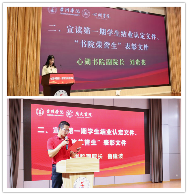 随后,刘贵花、鲁建波分别宣读了第一期书院学生结业认定文件、“书院荣誉生”表彰文件。
