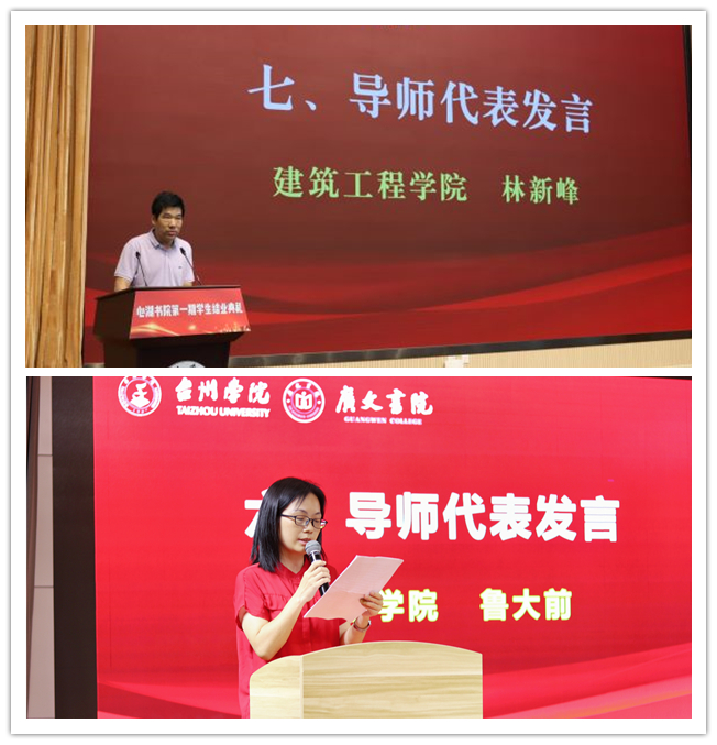 林新峰、鲁大前老师代表全体书院导师致辞,表达了导师们对同学们的殷切期望,寄语同学们再创新成绩。