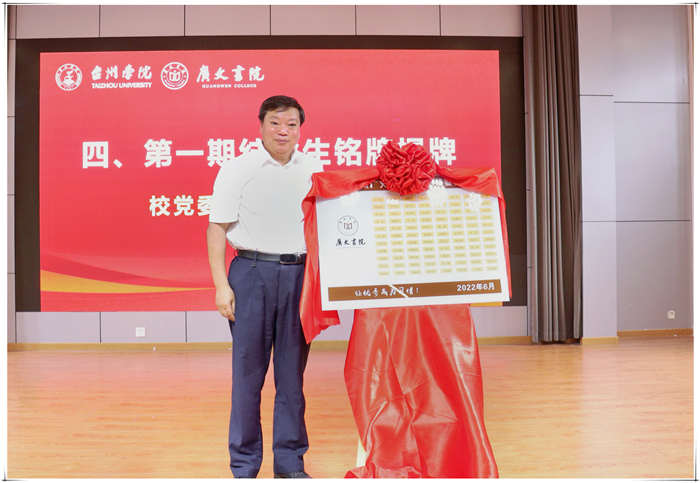 校党委副书记金先龙为书院第一期结业生铭牌揭牌。全体书院第一期结业生的名字镌刻在铭牌上,永载书院的发展史册。