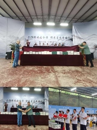 本次捐赠《台州文献丛书》进一步密切了广文书院与研学基地之间的联系,让书院学生实地走访中学校园,亲近初中学生,也将书院良好的阅读氛围传播到研学基地中去。