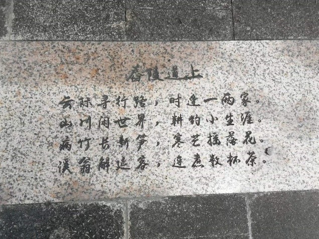 “醉来东望海茫茫,家近蓬莱万丈。”(《西江月》),“浔阳江头秋月明,黄芦叶里秋风声。”(《琵琶行》)。戴复古的诗歌刻在戴复古广场的石板路上,刻字在阳光下散发着幽幽的文化气韵,更让队员们感受到人们对戴复古的喜爱与敬重。戴复古自号石屏,号的来源正是现在石屏庙旁矗立着的石屏,号也包含了戴复古对家乡的热爱。在温岭市新河镇的石屏庙中竖立着戴复古像。“当地习俗在农历初九,莘莘学子到庙中烧香求戴复古的保佑,希望能妙笔生花、金榜题名”,胡老师介绍道。随后,戴济舜老师为队员们介绍戴氏家族古墓——戴勋及其妻、戴忱及其妻的坟墓,这对队员们了解戴氏家族提供了重大帮助。