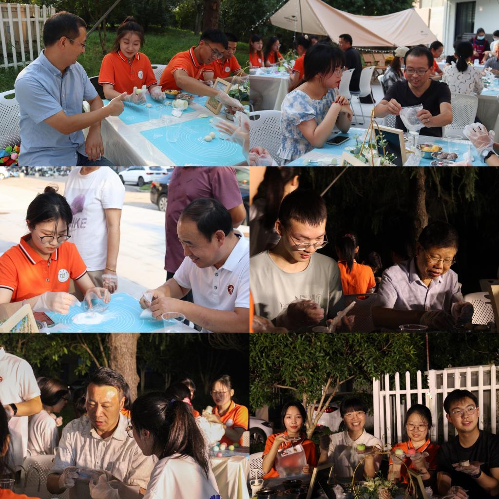 丹桂飘香,秋高气爽,导师和学员们一起在海报前合影留念,留下了自己的美好瞬间,接着师生们在糕点制作老师的指导下,一起DIY制作月饼,和粉、压皮、包馅……一个个新鲜的冰皮月饼作品就此呈现,大家相互点评,讨论声夹杂着欢笑声,包得住的是内馅,包不住的是幸福。随后导师和学员们纷纷步入大厅,品尝着自己亲手制作的月饼、甜品,畅聊人生,从生活、学习到兴趣发展,欢乐轻松的气息在空中肆意穿插着,飘荡不息。