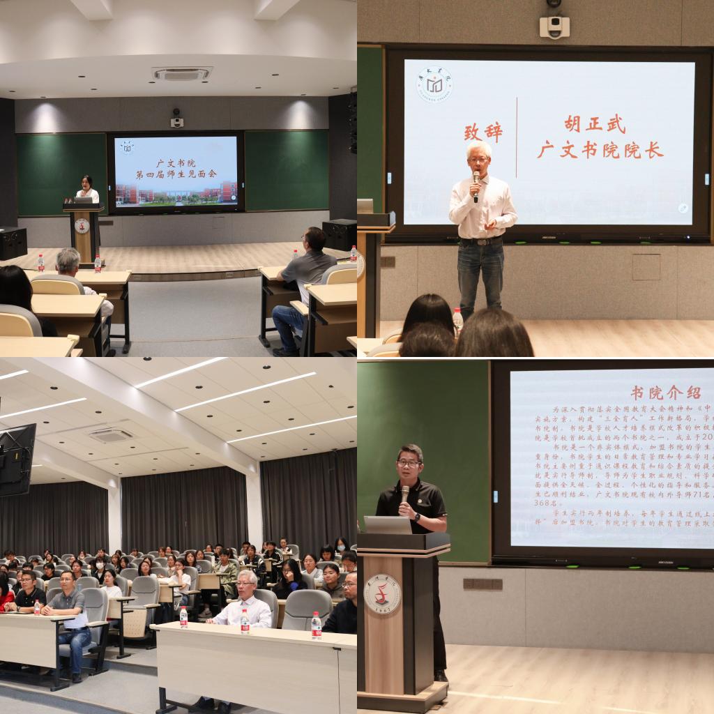 10月13日下午,广文书院第四届导师学生见面会在临海校区A6教室举行。广文书院院长胡正武、学工部副部长马斌、广文书院副院长鲁建波、广文书院辅导员黄廷美、部分书院导师及第四届广文书院学员出席本次活动。