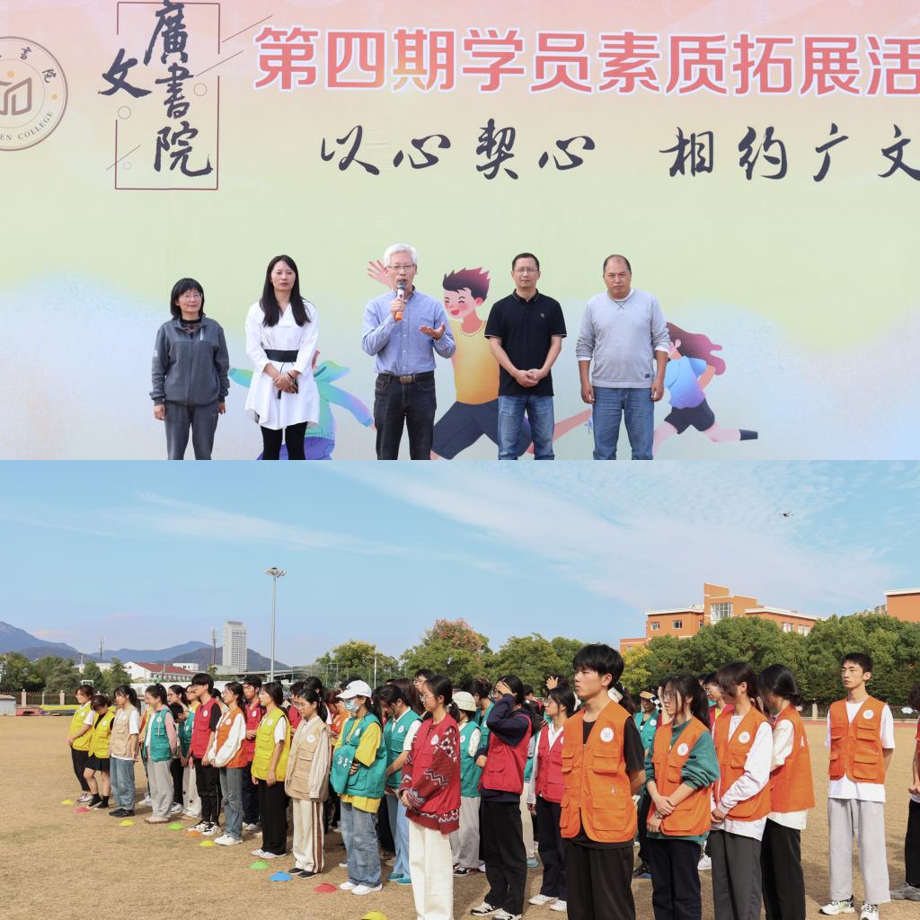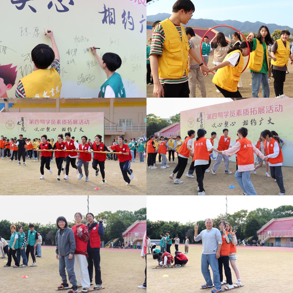 为促进书院学生交流、增强团队凝聚力与荣誉感,10月22日下午,广文书院在田径场展开以“以心契心,相约广文”为主题的广文书院第四期学员素质拓展活动。广文书院院长胡正武、学工部副部长马斌、书院辅导员黄廷美、书院导师蒋桂凤、郭文平及第四届书院学员共同参加本次活动。