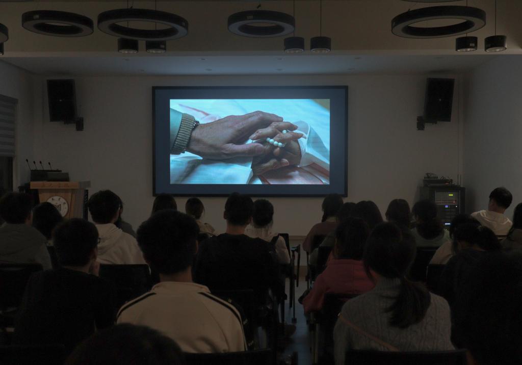 11月20日晚,广文书院在多功能厅举办以“生死如歌——心安即是归处”为主题的集体观影活动,书院辅导员黄廷美老师和学员们齐聚一堂观看了电影《入殓师》。