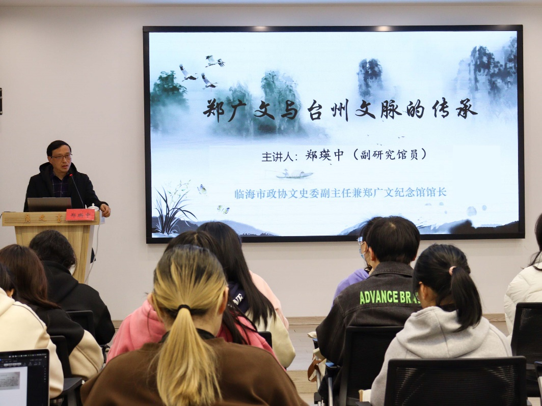 3月7日晚,广文书院在多功能厅举行了以“郑广文与台州文脉的传承”为主题的第18期广文讲坛。临海市郑广文纪念馆馆长兼市政协文化文史委副主任郑瑛中应邀担任主讲嘉宾,书院辅导员黄廷美及部分书院学员参加,由学工部副部长马斌主持。