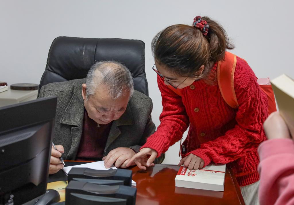 进入工作室,同学们被张明龙教授丰硕的著作所震惊,在一本本著作前,同学们精心挑选了自己感兴趣的书籍。张明龙教授为学员选中的书籍亲笔签名,留下殷殷期盼、谆谆嘱托。