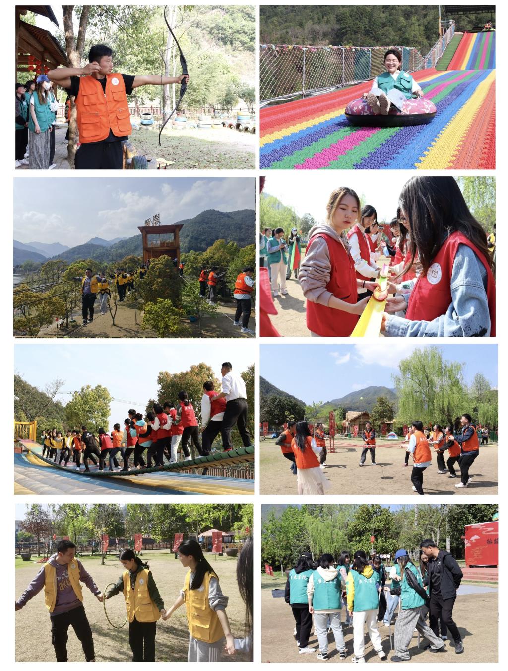 下午,各组学员在教练和老师的鼓励下,完成了“高空走钢丝”“七彩旱滑”“射箭”“摇摆桥”等惊险刺激的项目。高空走钢丝过程中,即使脚下颤颤巍巍,学员们还是克服恐惧,勇敢向前迈进;在射箭环节,有射中靶心的欢喜,也有努力拉开弓箭以期望射中靶心的倔强;在七彩旱滑中,学员们体验了自由滑行的无尽欢乐。活动最后,教练宣布了比赛结果,三位老师为获胜队伍送上意义重大的礼物。