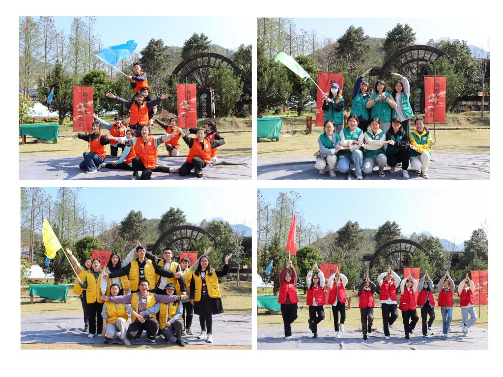上午,自管会成员按照部门分成四组进行比拼。每组迅速讨论出了队旗、队标和人体Logo,并进行了风采展示,一支支意气风发的队伍诞生了。在经过热身暖场、活动训练后,各组迎来了计时版的“鼓动人心”“不倒森林”“高山流水”“一圈到底”“即兴节拍”五项游戏挑战。游戏项目采取积分制进行评比,极大调动了参与者的热情。各个小组竭尽全能与时间赛跑,有畅行无阻的,也有手忙脚乱的,但所有队员都在相互协调下完成了挑战,增进了队员间的默契。结束后,各位老师和学员还自由领略了柔川景区美丽的风景和人文景观。