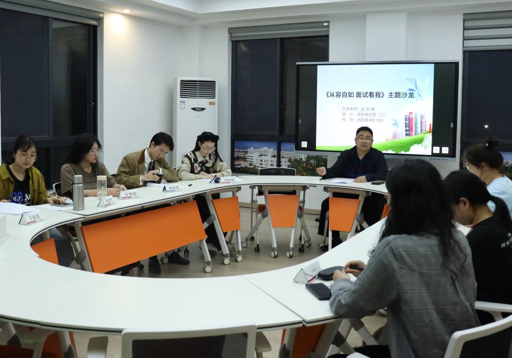 4月11日晚,广文书院在师生研讨室(三)举行了以“从容自如 面试看我”为主题的沙龙活动。本场沙龙邀请了浙江省临海监狱教育改造科副科长吴高通做分享嘉宾,部分书院学员参加。