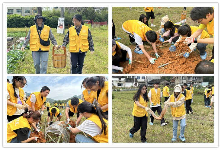 活动伊始,同学们按照向导讲解的“土窑搭建攻略”,分成4个小组,纷纷运用专业特长,各司其职,有的提水、有的搬运泥土、有的精心设计土窑造型,用泥土、石头、稻草这些简单天然的材料搭建土窑。随着土窑的初具成型,同学们来到土豆田,拿起小锄头,开启“寻豆”之旅。经过一个小时的田间劳作,同学们与土豆结下了不解之缘。挖出的土豆大的饱满,小的可爱,大家迫不及待地把这些大大小小的“金色蛋子”清洗干净,放进搭建好的土窑里,等待“原味土豆”的出炉。