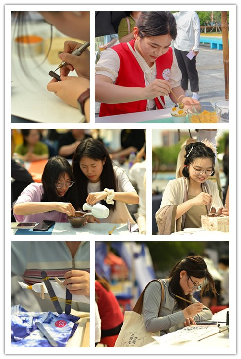 书院“文心课程”是具有书院特色的通识选修课程,是书院实行通识教育的重要载体。经过三年的积极探索和实践,目前已开设70余门通识课程。此次活动共设《宋代点茶》《书法与实践》《陶艺造型》《传统木艺》《扎染艺术》《乐享烘焙》等六个打卡点位,这些课程实操性强且深受书院学生喜爱。