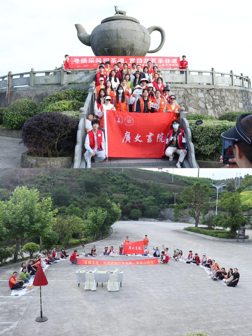 5月27日下午,广文书院举行以“寻槚采荈探茶源,赏蔎品茗承非遗”为主题的第四期茶会暨羊岩山茶文化研学。茗雅茶文化创始人、书院茶艺课指导老师徐凤君、书院导师王声平、宇文博、高艳红,辅导员黄廷美和部分书院学子共同参与。