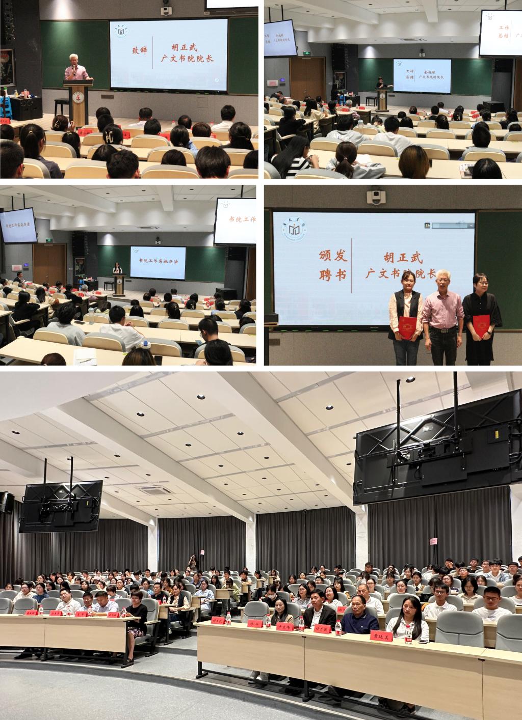 会上,金旭球回顾总结了书院2022学年的工作。她向在场学员们介绍书院的宗旨、组织架构后,展示了“广文课程”“广文讲坛”“广文沙龙”与“广文足迹”书院四大品牌活动和其它特色活动,加深了学生们对书院的了解。黄廷美为学生们解读《书院工作实施办法》《书院学生荣誉学分认定及管理办法》等书院管理办法,并对学生在书院学习给出了建议,帮助他们了解书院制度,更好地成长。胡正武为新聘导师敖英、黄仙姬等颁发导师聘书。最后,书院学生自管会进行了招新宣讲。